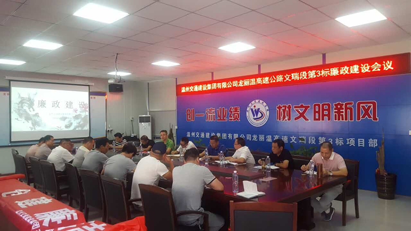 9月18日,龍麗溫高速公路文瑞段第3標(biāo)項(xiàng)目部召開廉政建設(shè)會(huì)議,同時(shí)集團(tuán)公司黨總支派人參加并進(jìn)行黨紀(jì)黨規(guī)教育和廉潔從業(yè)教育交流活動(dòng),參加會(huì)議的有龍麗溫高速公路溫州段工程建設(shè)指揮部紀(jì)檢監(jiān)察室負(fù)責(zé)人、項(xiàng)目部領(lǐng)導(dǎo)班子和部門以上負(fù)責(zé)人、以及集團(tuán)公司黨總支部、第一、第二支部書記、委員和項(xiàng)目部全部黨員,共20多位黨員管理人員參加了活動(dòng)。