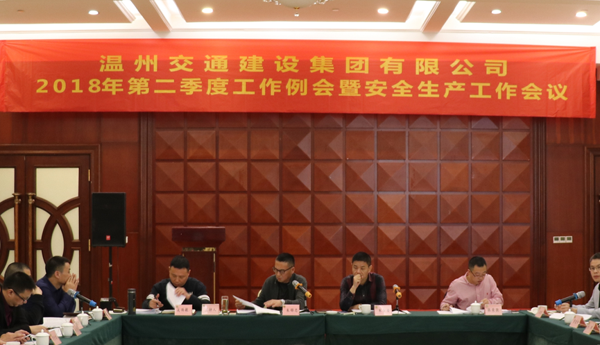 4月18日,在金銀島大酒店召開溫州交通建設集團有限公司2018年第二季度工作例會暨安全生產(chǎn)工作會議,董事長朱如安、副董事長王建煌,總裁朱錦忠,副總裁鄭守仕、徐凌松,總工程師張榮敦,安全生產(chǎn)總監(jiān)吳確敏等集團公司領導,以及各部門、子公司、分公司、項目部主要領導和安全負責人等共48人參加。會議由總裁朱錦忠主持。